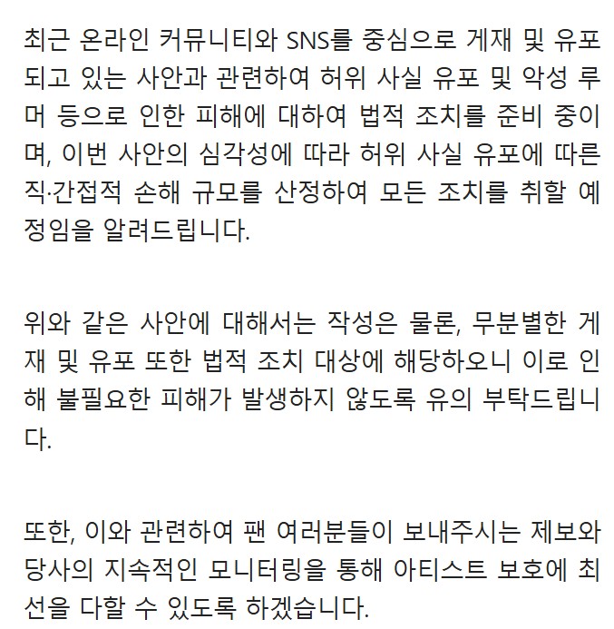 그러자 소속사는 곧바로 이는 ‘명백한 허위사실이며, 짜깁기”라며 강력하게 대응에 나섰습니다